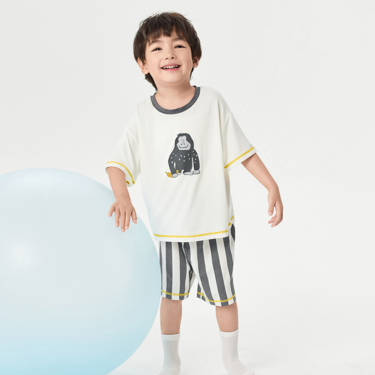 凉感抑菌儿童睡衣套装夏季薄款男童空调服儿童家居服亲子短袖套装 173509