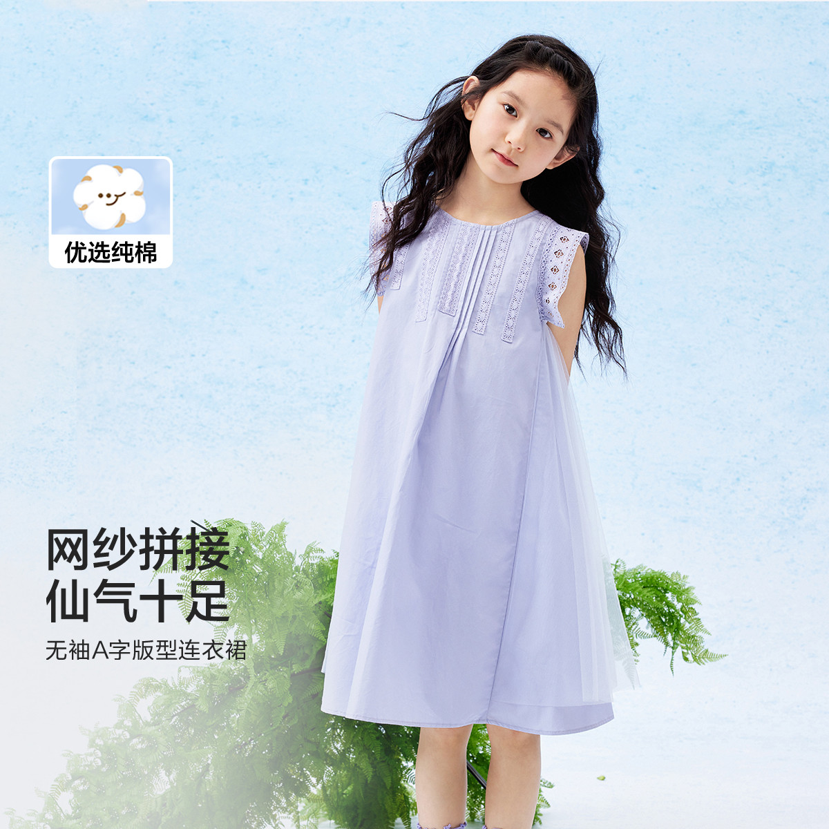 纯棉儿童裙子女童连衣裙女童裙子夏公主裙无袖洋气网纱裙高级感 917573