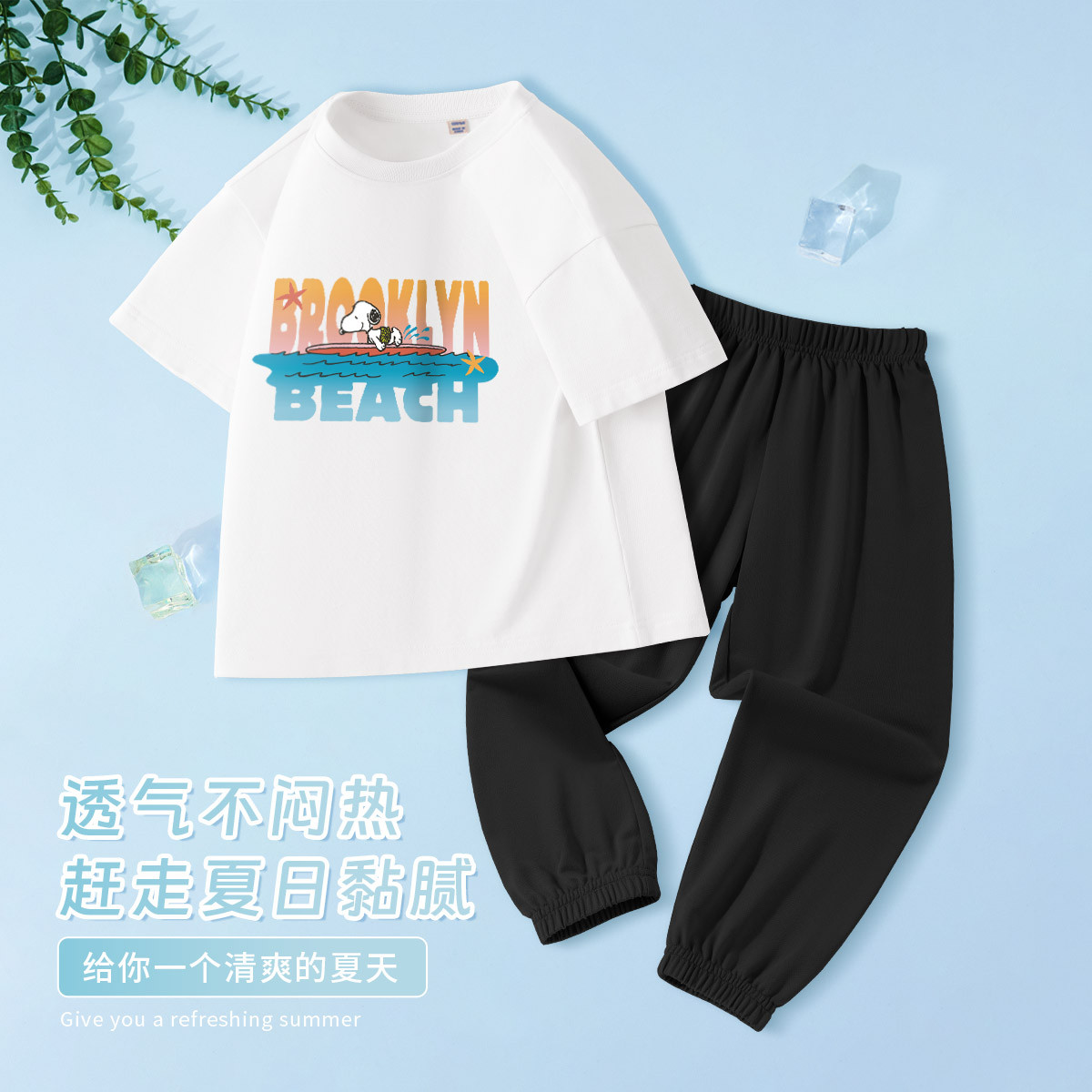 童装男童套装中大童夏季纯棉短袖t恤青少年可防蚊长裤儿童两件套 782495