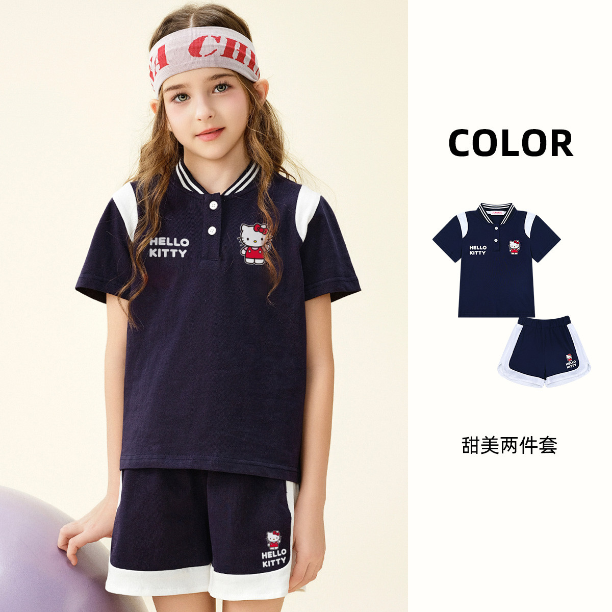 女童学院风套装25年夏季儿童夏款纯棉透气短袖中大童运动两件套 908371
