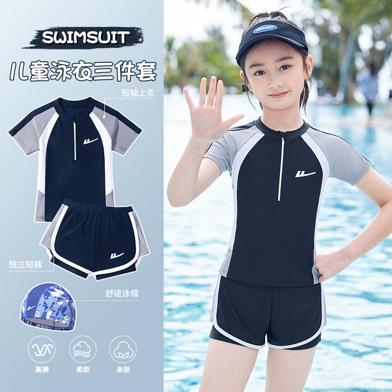 儿童泳衣女孩专业训练分体女童游泳衣中大童泳装女孩温泉游泳套装 630611