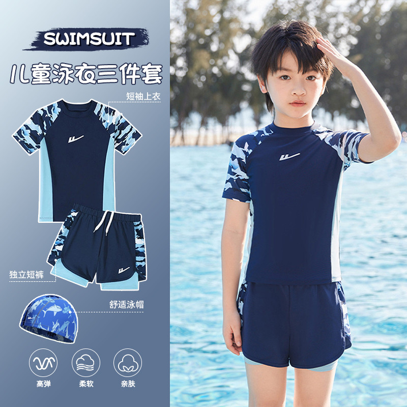 儿童泳衣男童分体泳衣中大童游泳衣专业训练游泳馆海边度假泳衣男 099923