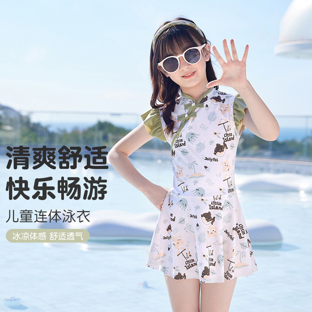 儿童泳衣女童夏季女孩连体中国风中大童宝宝可爱泳装温泉女童泳衣 904147