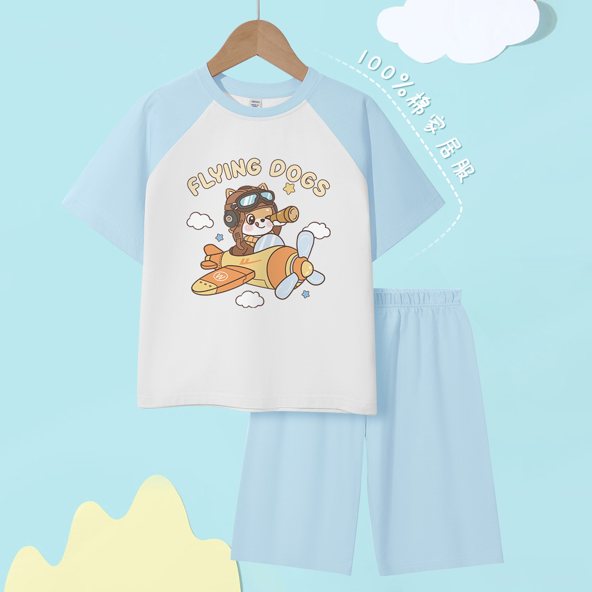 儿童家居服夏款男童夏季纯棉飞行员空调服25年夏装男孩短袖套装 172819