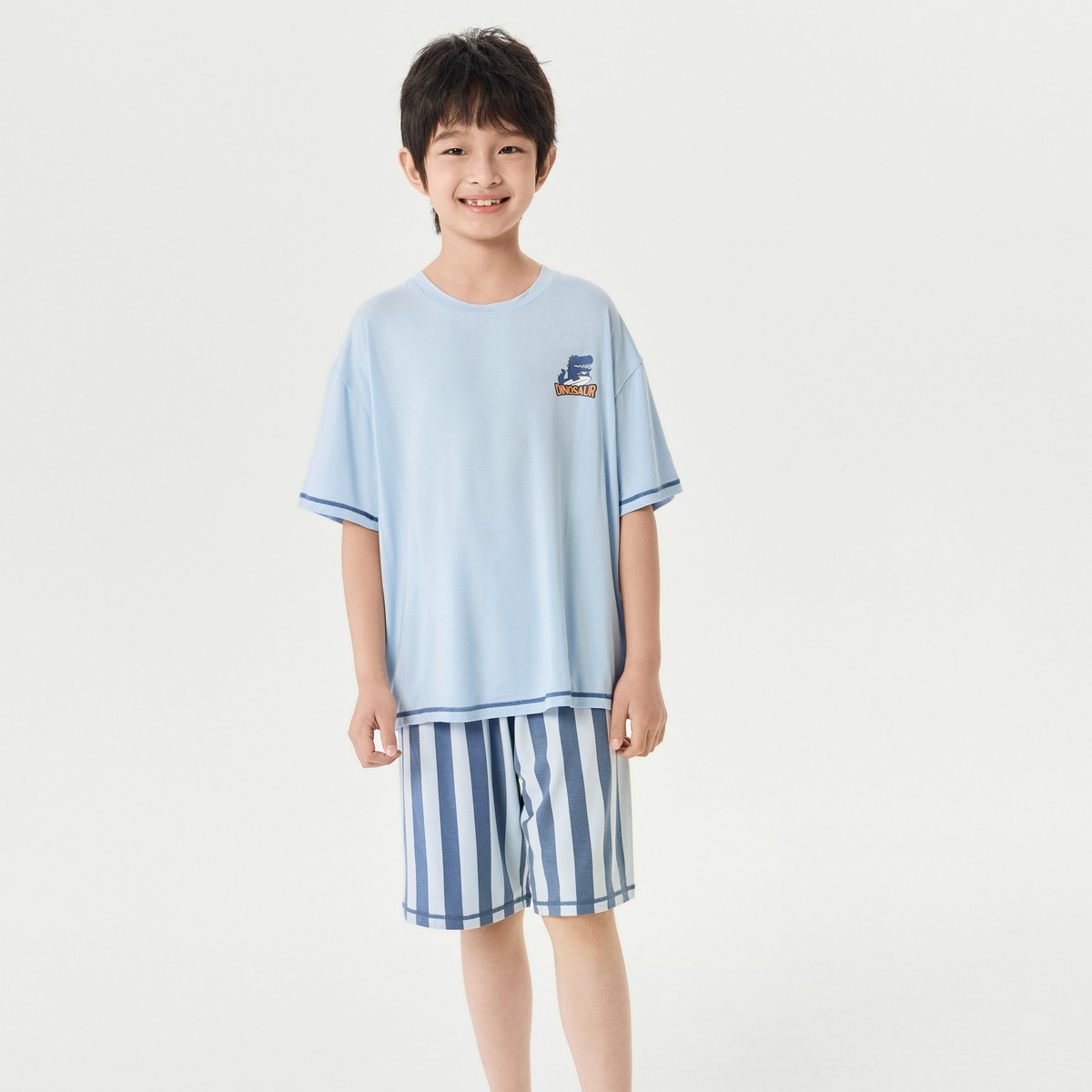 儿童睡衣夏季男童薄款透气套装中大童插肩袖空调服男孩纯棉家居服 574227