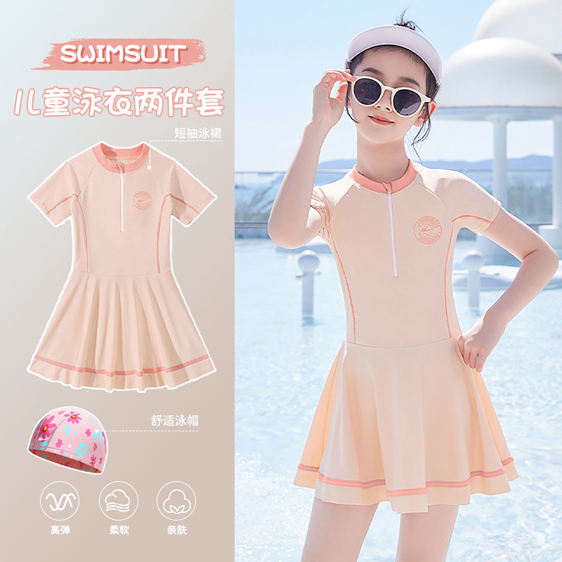 儿童泳衣女孩保守连体中大童宝宝保守泳装女童游泳衣舒适温泉 347283
