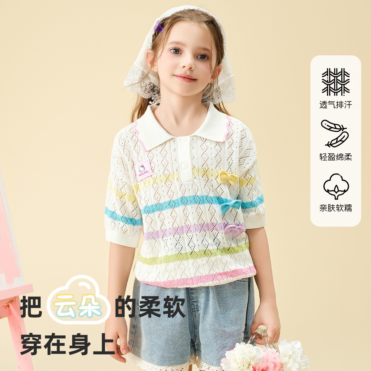 彩虹撞色毛线T恤2025款女宝夏季毛衣舒适透气可爱女童装 973598