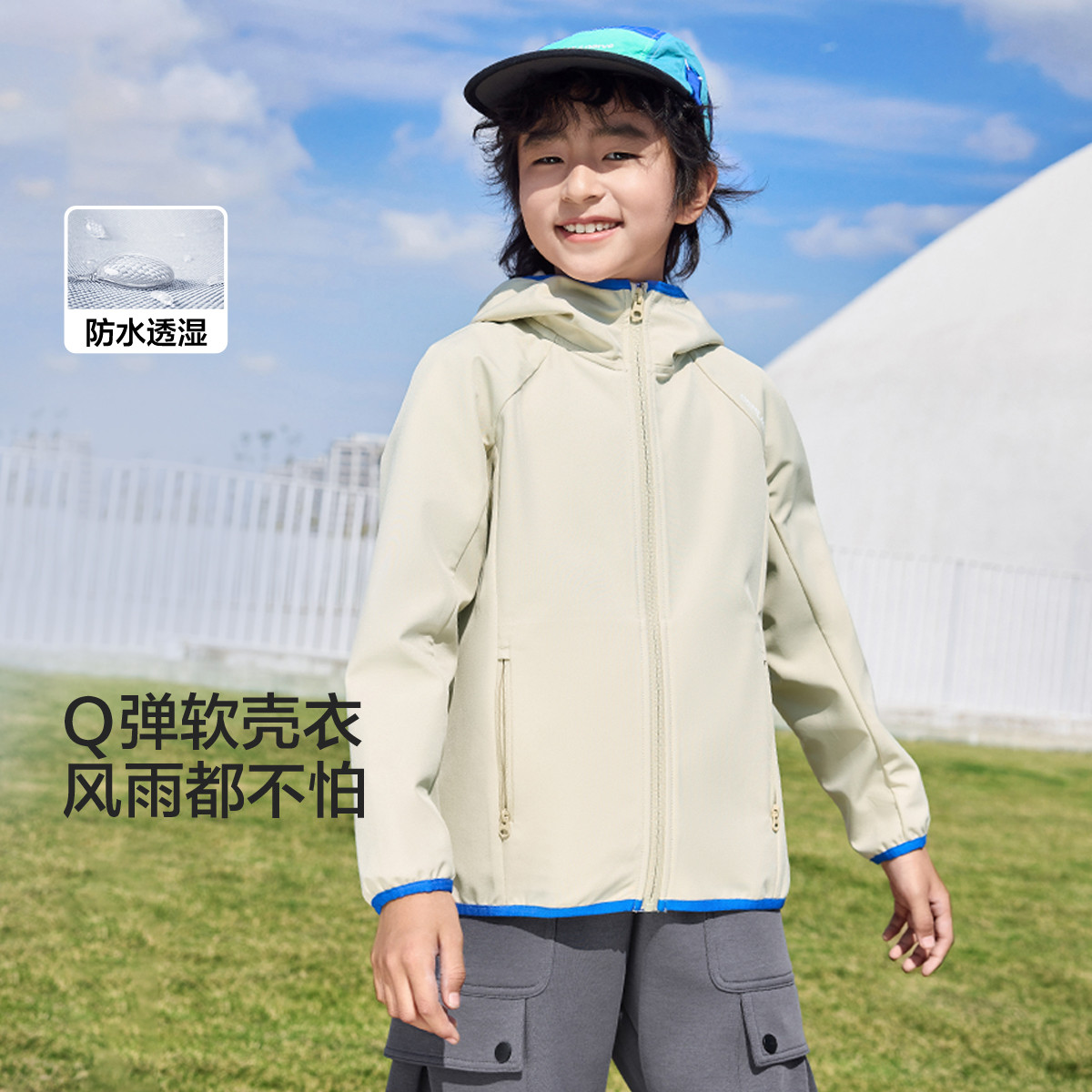 户外风儿童外套男童女童春秋装中大童连帽开衫便服童装软壳衣百搭 850501