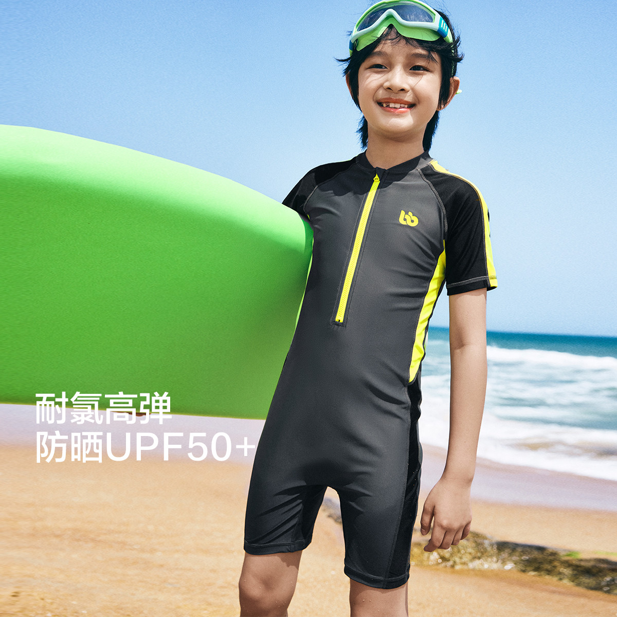 UPF50+抗氯儿童连体式泳衣男童泳衣中大童印花撞色潮 388485