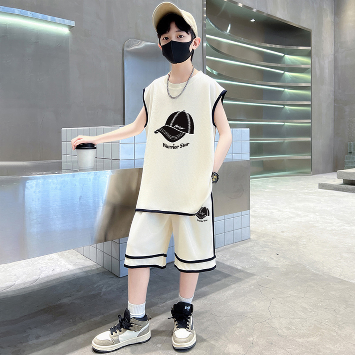 童装24年夏季男童背心套装休闲撞色潮流两件套儿童洋气百搭 446547