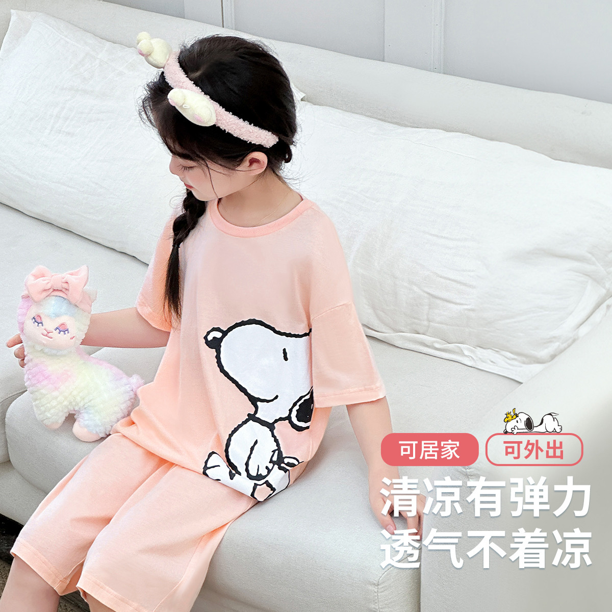 巴拉巴拉女童睡衣套装夏季空调服小中大童宝宝家居服亲肤透气甜美 960773