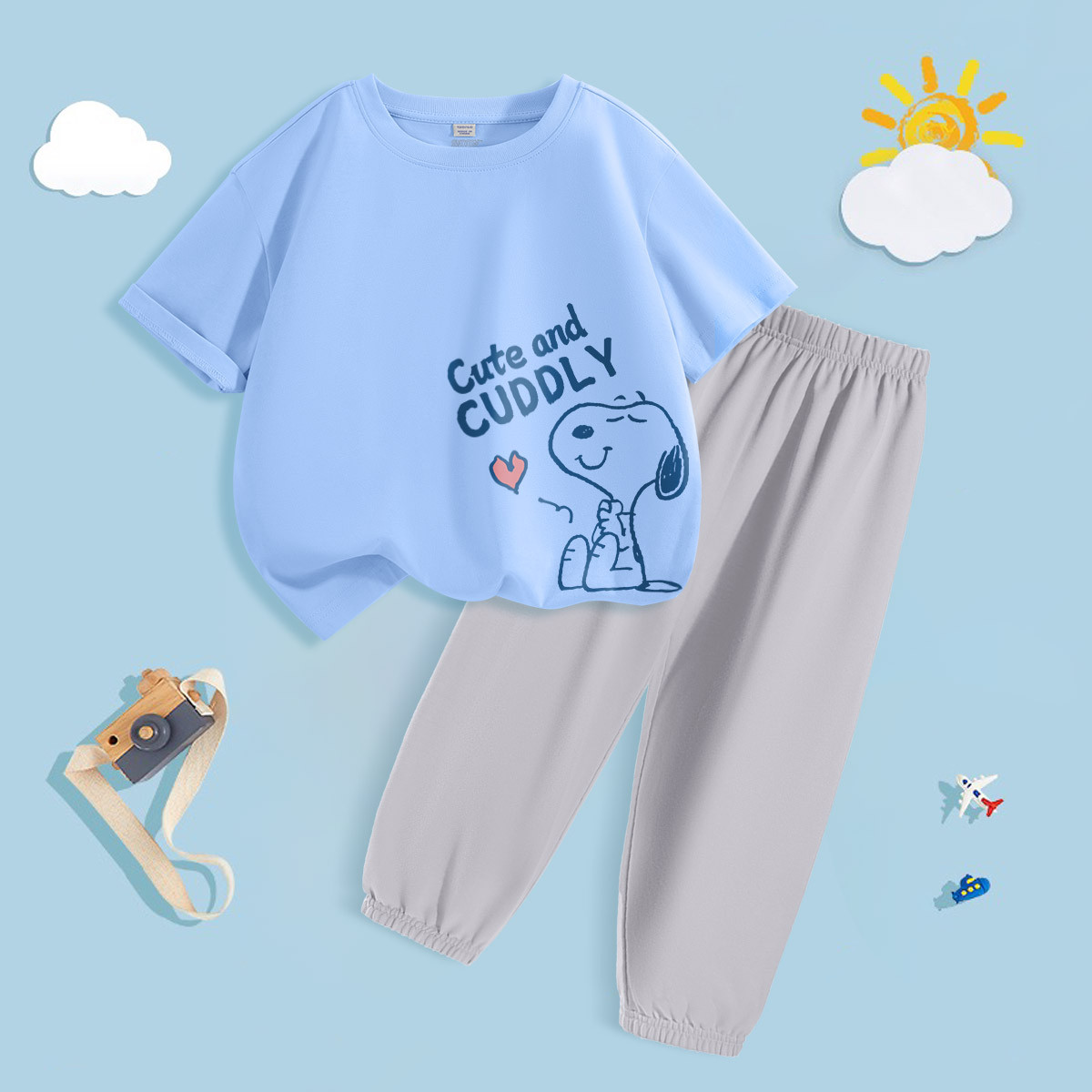 儿童运动套装25年夏季新款短袖t恤中大童可防蚊长裤男女童夏装 406879