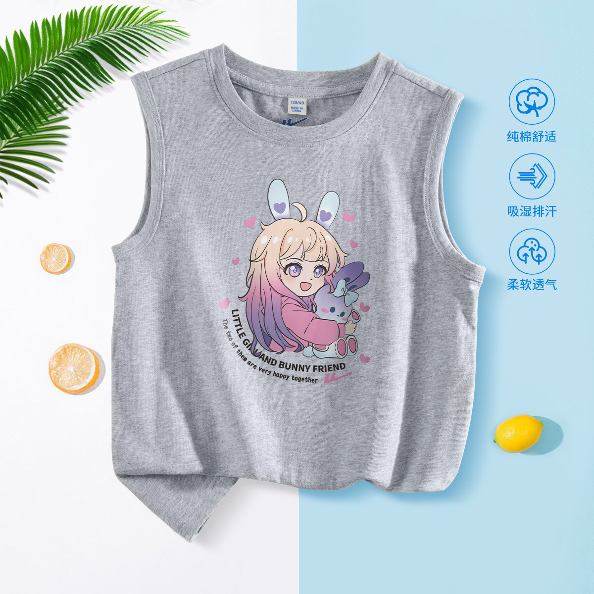 女童夏季背心内穿薄款透气儿童无袖T恤衫纯棉女孩夏装运动上衣服 059667
