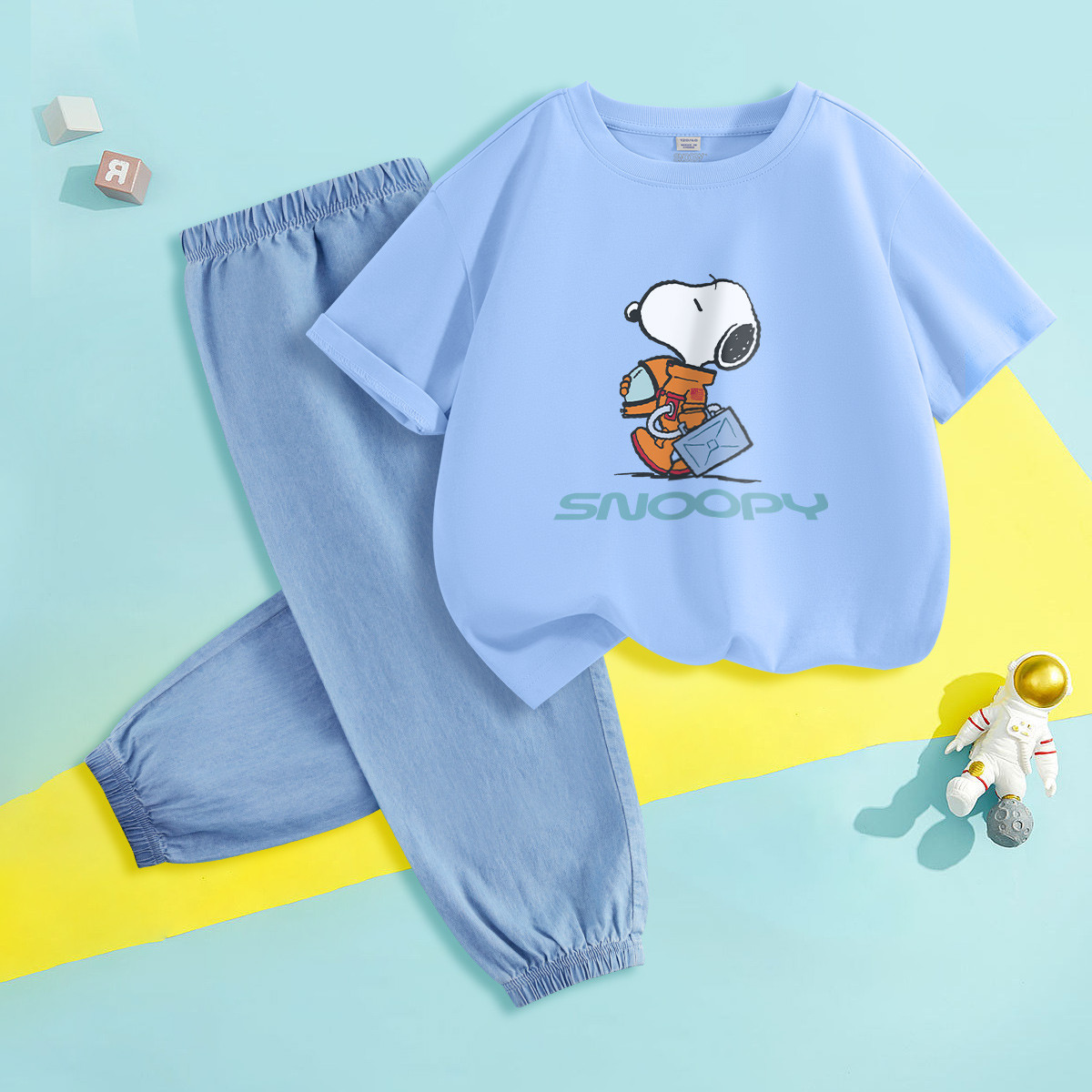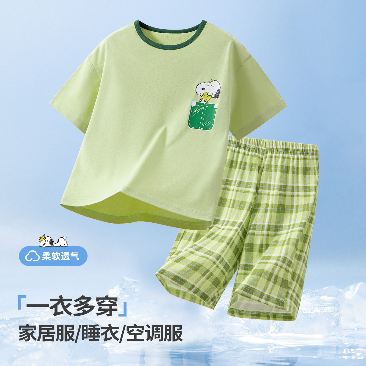 【纯棉套装】夏季空调服短袖短裤2件套儿童家居服中大童睡衣套装 353048