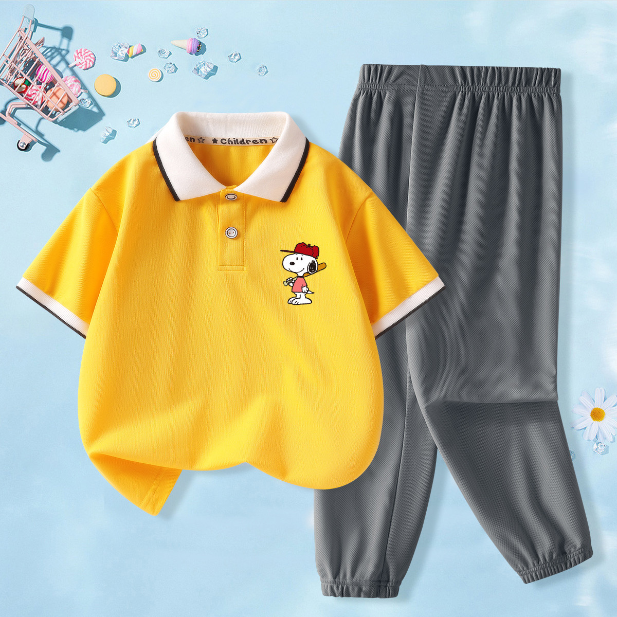 男童套装夏季中大童短袖t恤POLO衫2025新款男孩防蚊裤 913567