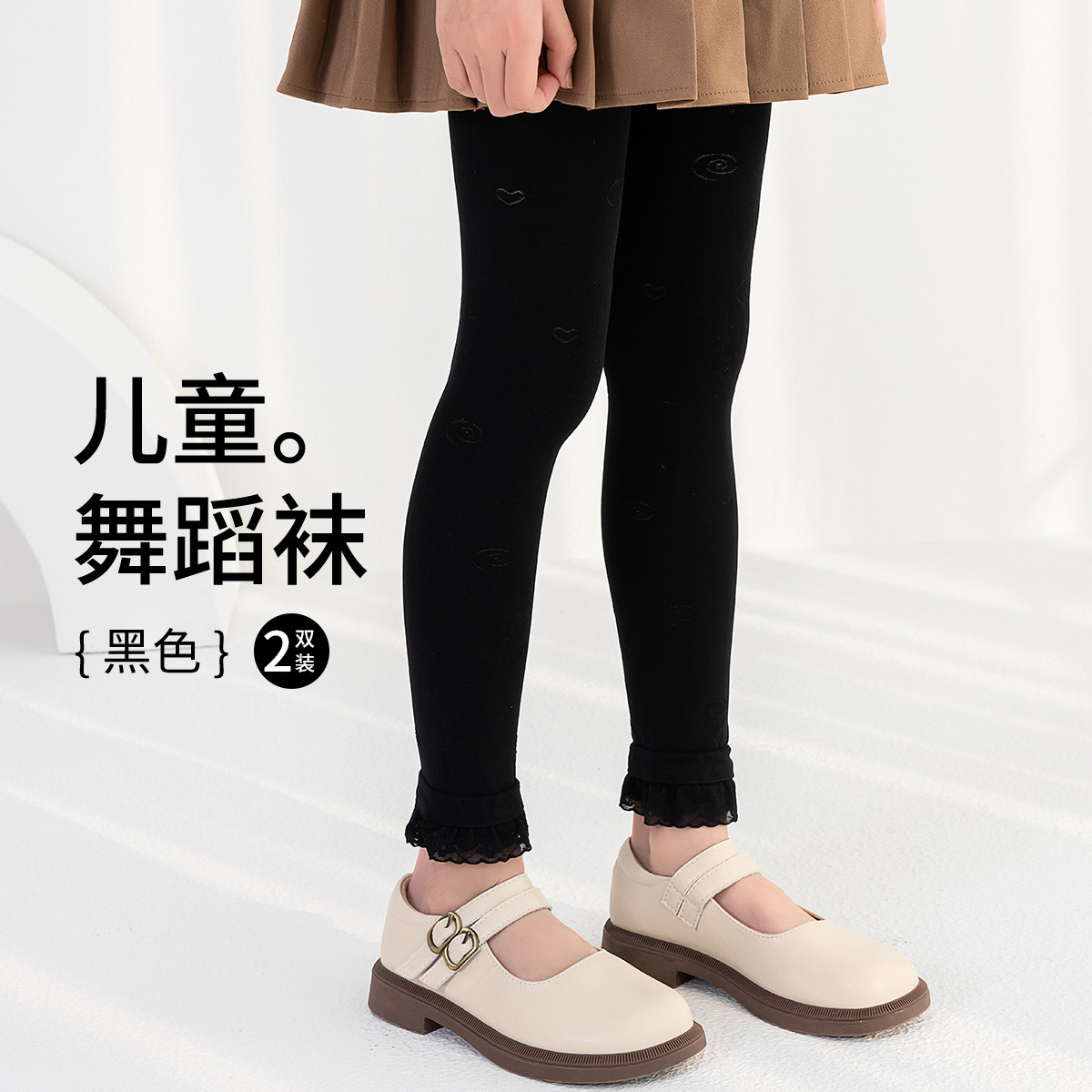 【可爱蕾丝花边】2条装儿童舞蹈袜春秋款防滑女童打底九分裤袜 090507