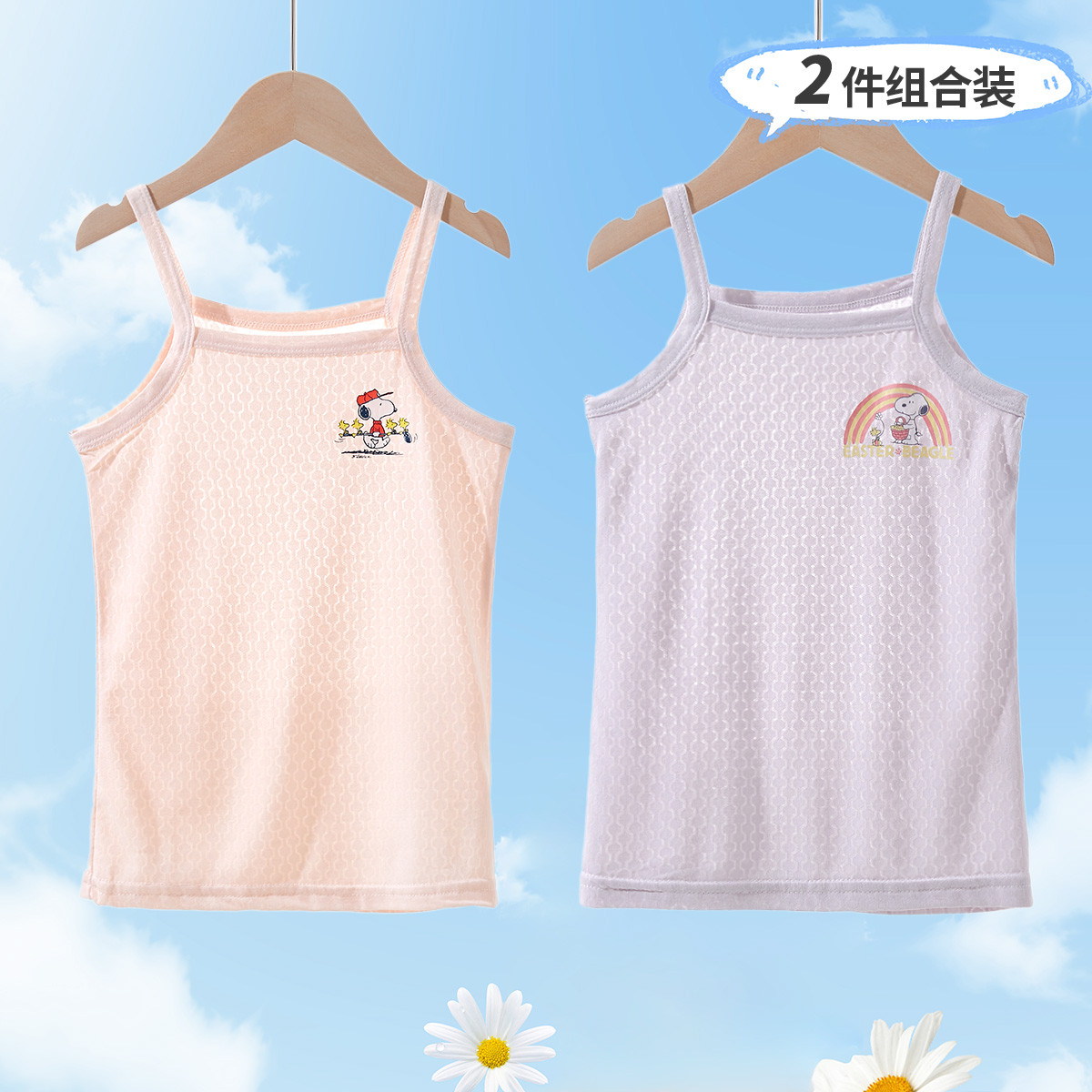 【亲肤面料2件装】女童吊带衫提花背心儿童无袖背心宝宝打底衣 395416