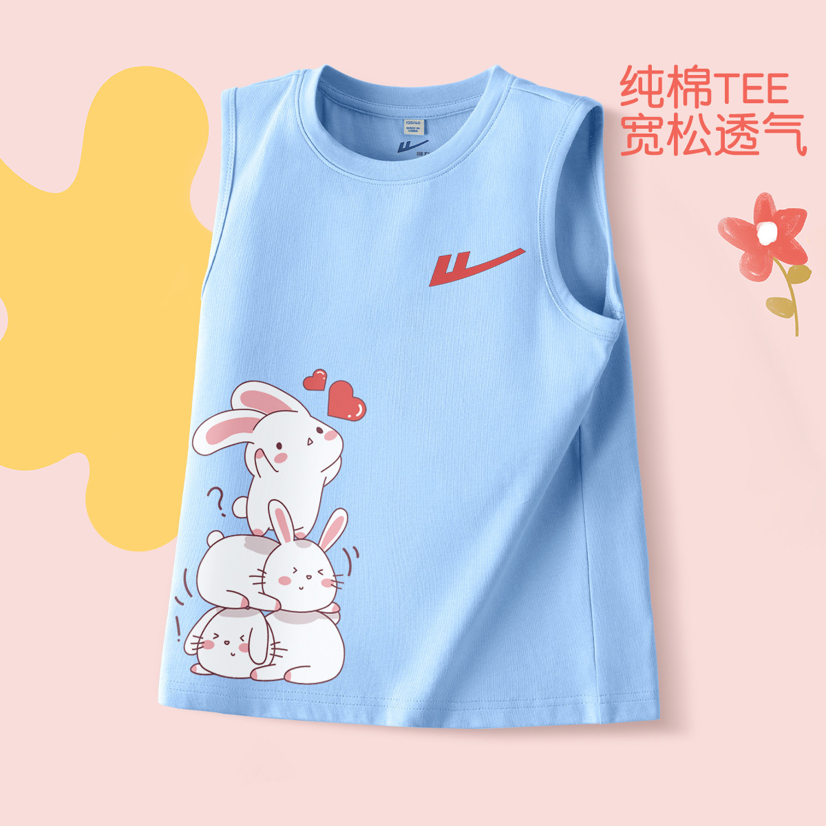 儿童背心纯棉夏季女孩无袖t恤夏装舒适坎肩女童运动外穿上衣可爱 250259