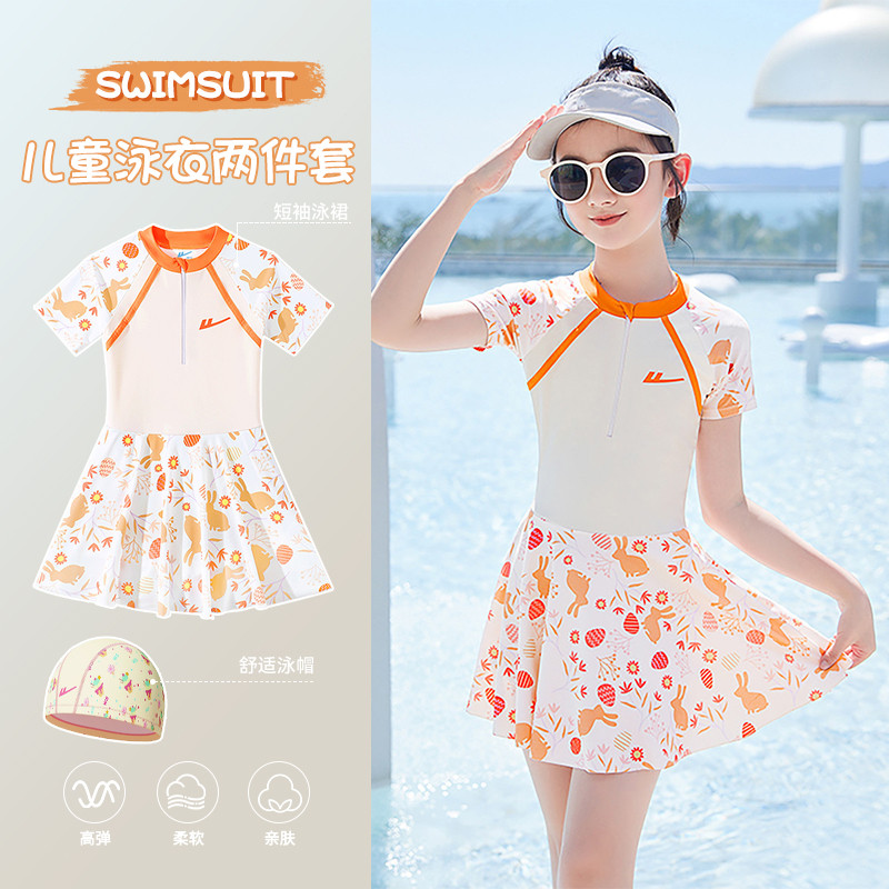 儿童泳衣女孩甜美连体中大童夏季宝宝泳裙专业游泳温泉游泳套装 618387