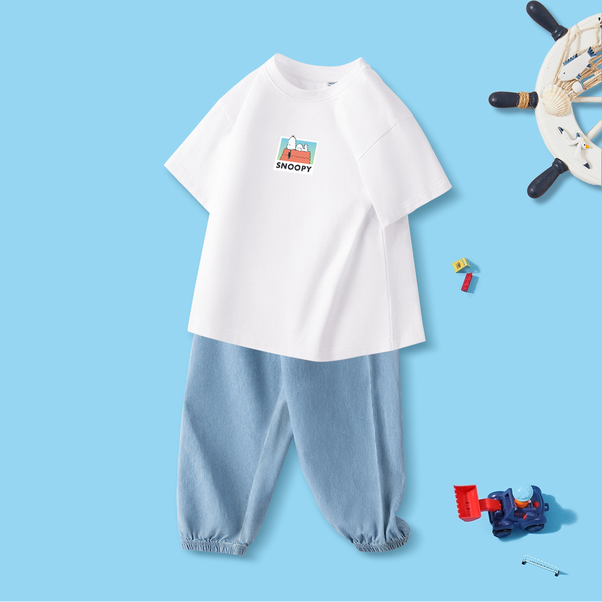 儿童套装2025年夏季短袖t恤中大童仿牛仔长裤儿童运动两件套 105631