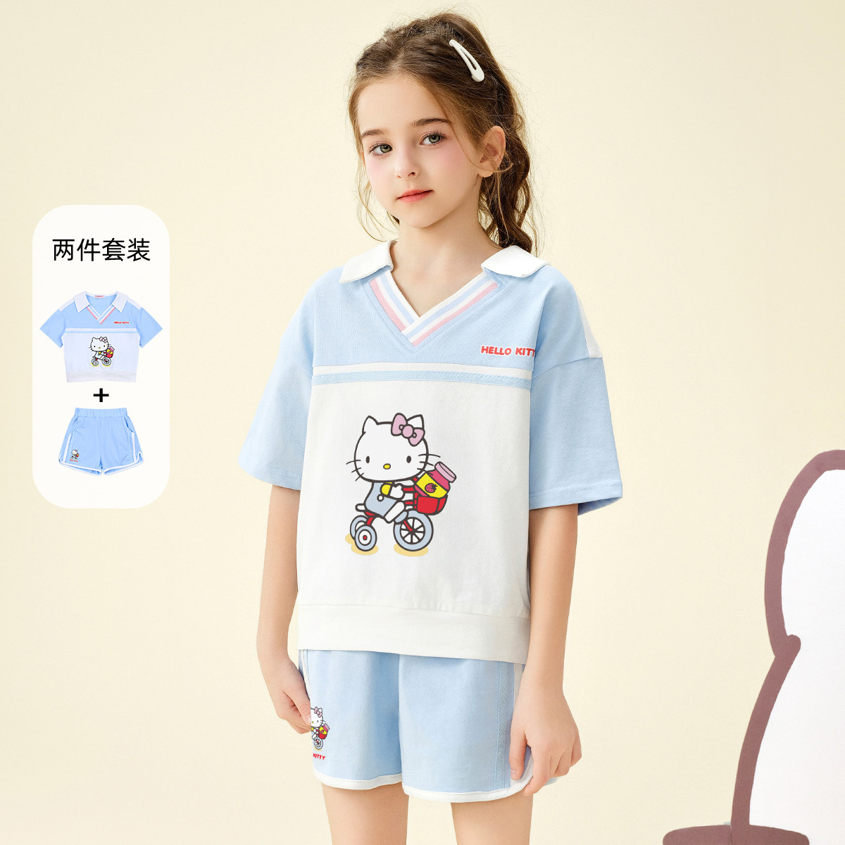 女童学院风套装25年夏季儿童夏款纯棉透气短袖中大童运动两件套 908371