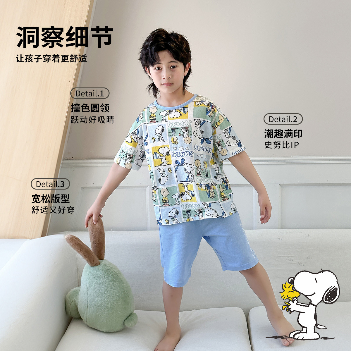 【100%纯棉】夏中大童短袖男童睡衣家居服套装儿童睡衣睡裤 313560