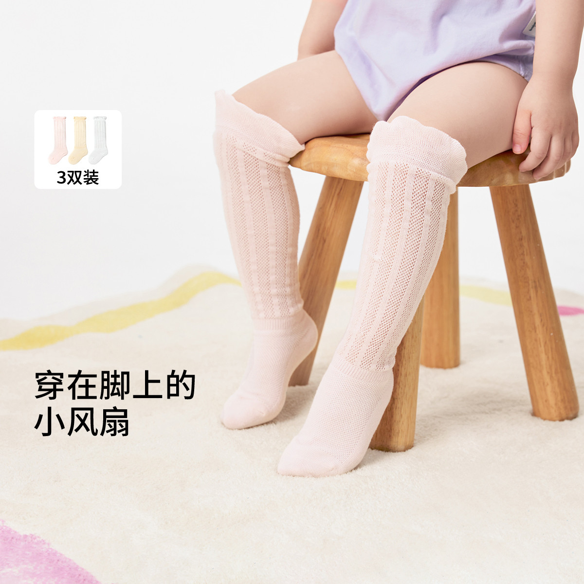 透气三双装儿童袜子宝宝婴幼儿长筒袜夏季薄款男童女童过膝防蚊袜 804229
