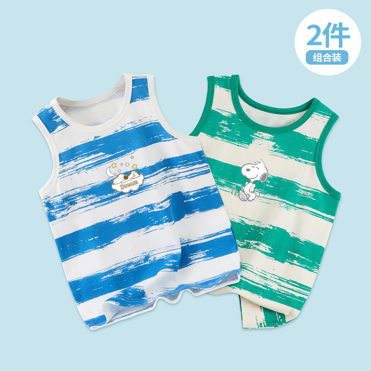【纯棉条纹背心两件装】男童背心2025夏新款轻薄透气儿童背心 772696