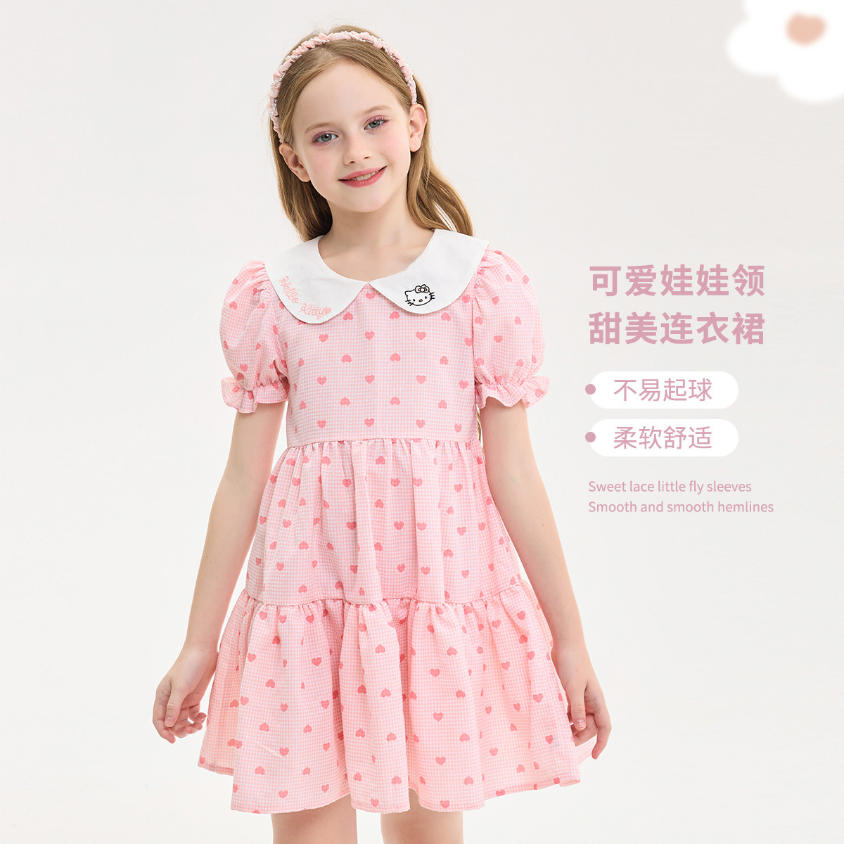 夏季小清新连衣裙儿童学生甜美百褶蛋糕裙女孩舒适透气洋气裙子 110017