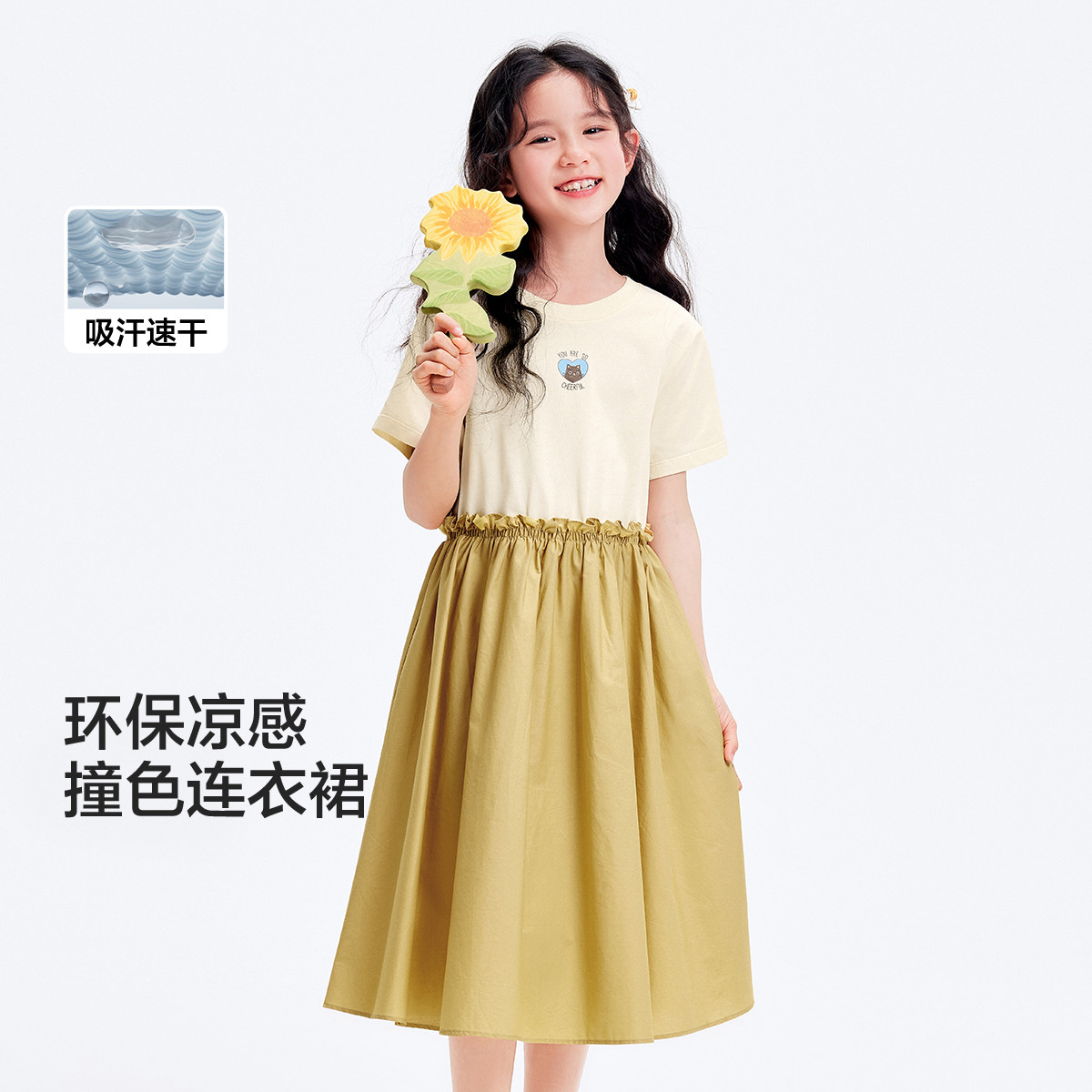 速干凉感儿童裙子女童连衣裙薄夏季大童假两件公主裙 459141