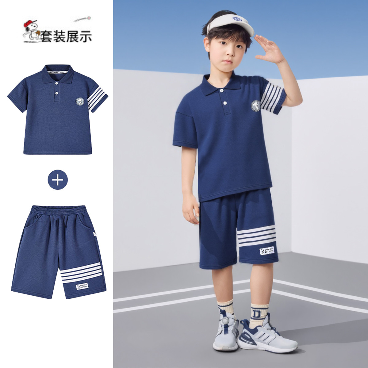 儿童POLO套装25年夏季小中大童短袖T恤休闲运动短裤两件套 108575