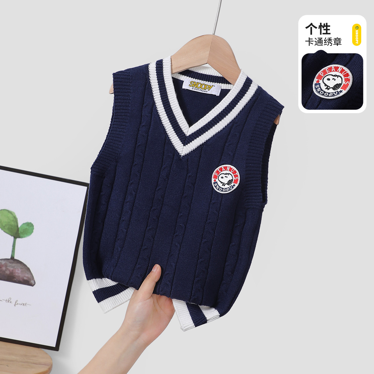 【学院风针织V领背心】儿童春秋季外搭薄马甲毛衣背心男童背心 423704