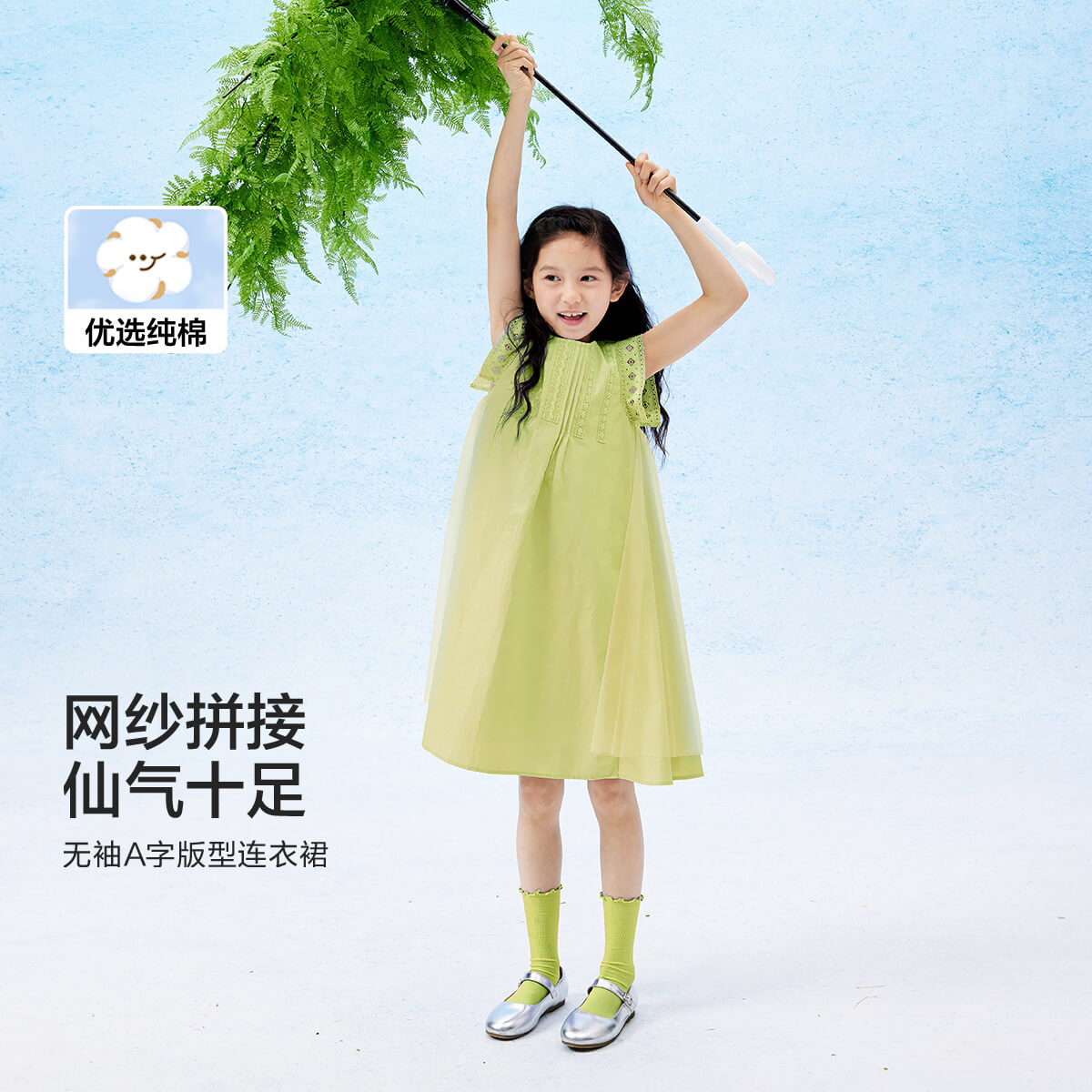 纯棉儿童裙子女童连衣裙女童裙子夏公主裙无袖洋气网纱裙高级感 958533