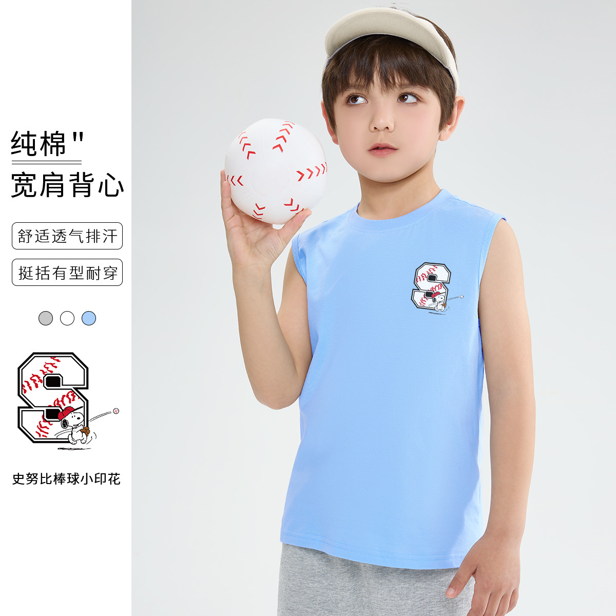 男童背心大童夏季纯棉无袖t恤青少年薄款跑步衫儿童坎肩运动上衣 255135
