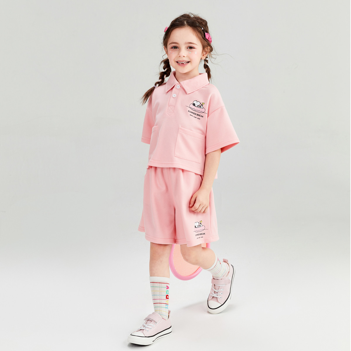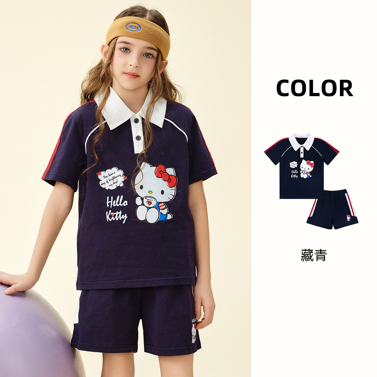 女童学院风套装25年夏季儿童夏款纯棉透气短袖中大童运动两件套 908371