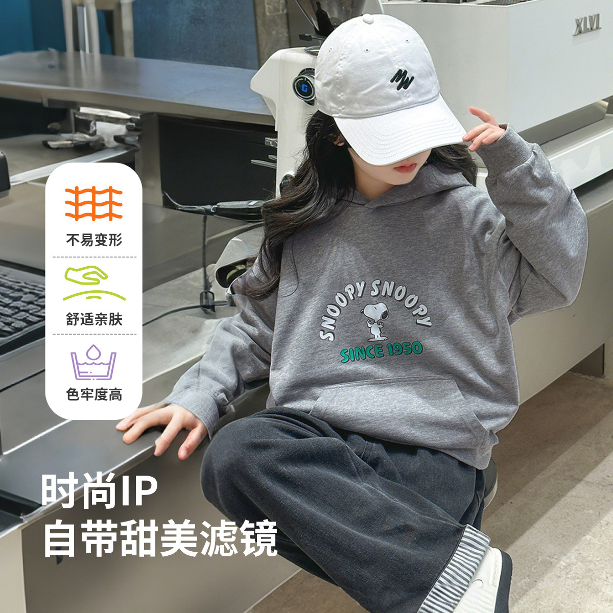 【防风落肩袖连帽卫衣】春季儿童卫衣宝宝百搭上衣洋气女童卫衣 456408