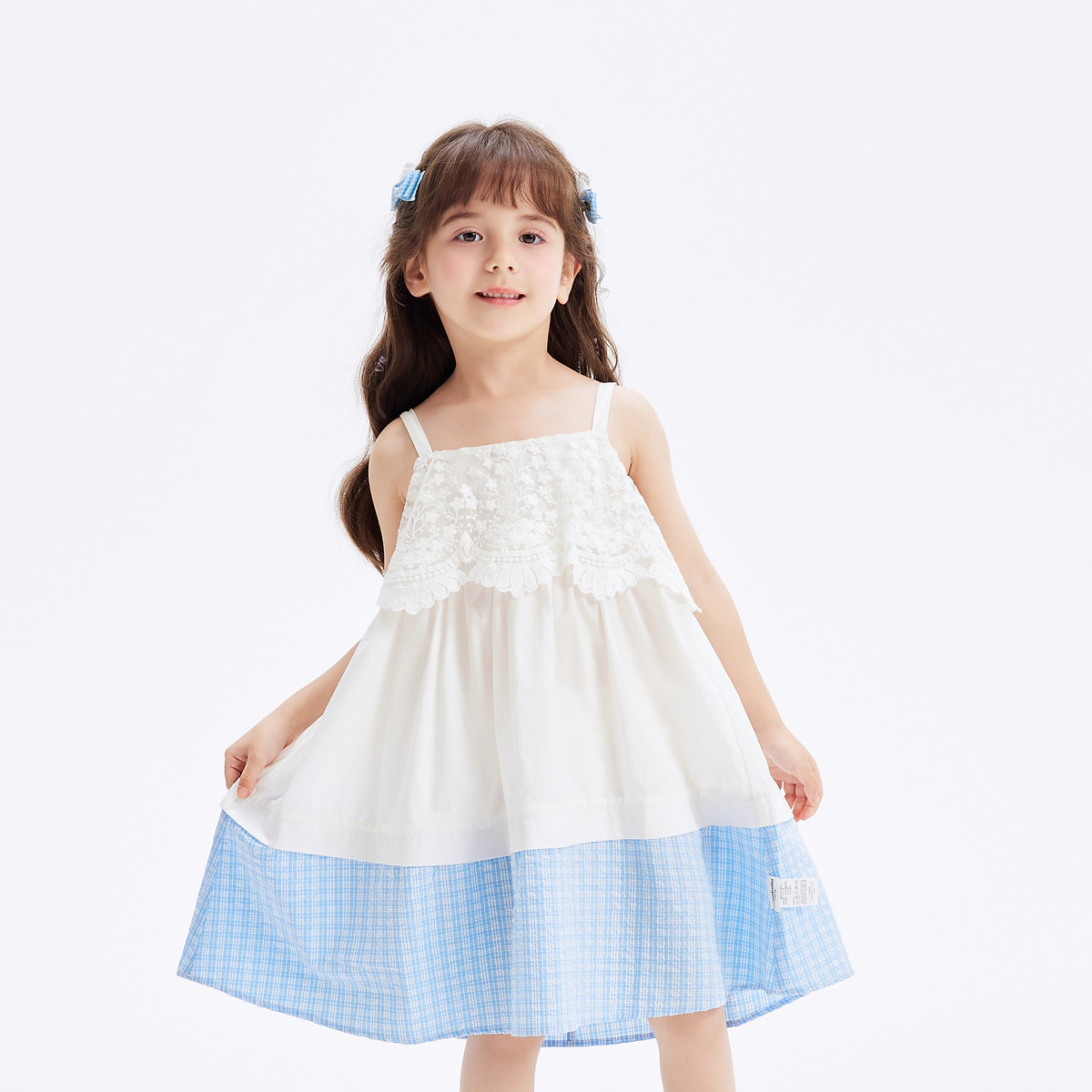 凉爽透气蕾丝格纹拼接儿童裙子夏装女童连衣裙时尚吊带裙高级感 903941