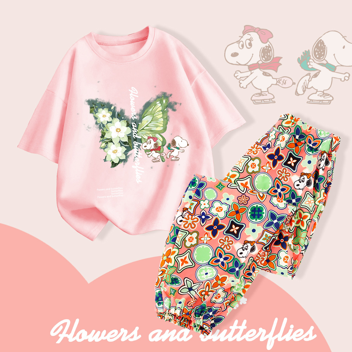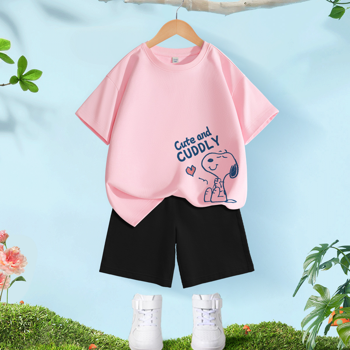 女童套装2025夏季卡通亲肤短袖T恤舒适透气防蚊裤两件套 034911