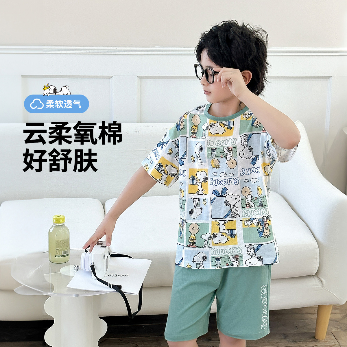 【100%纯棉】夏中大童短袖男童睡衣家居服套装儿童睡衣睡裤 317656