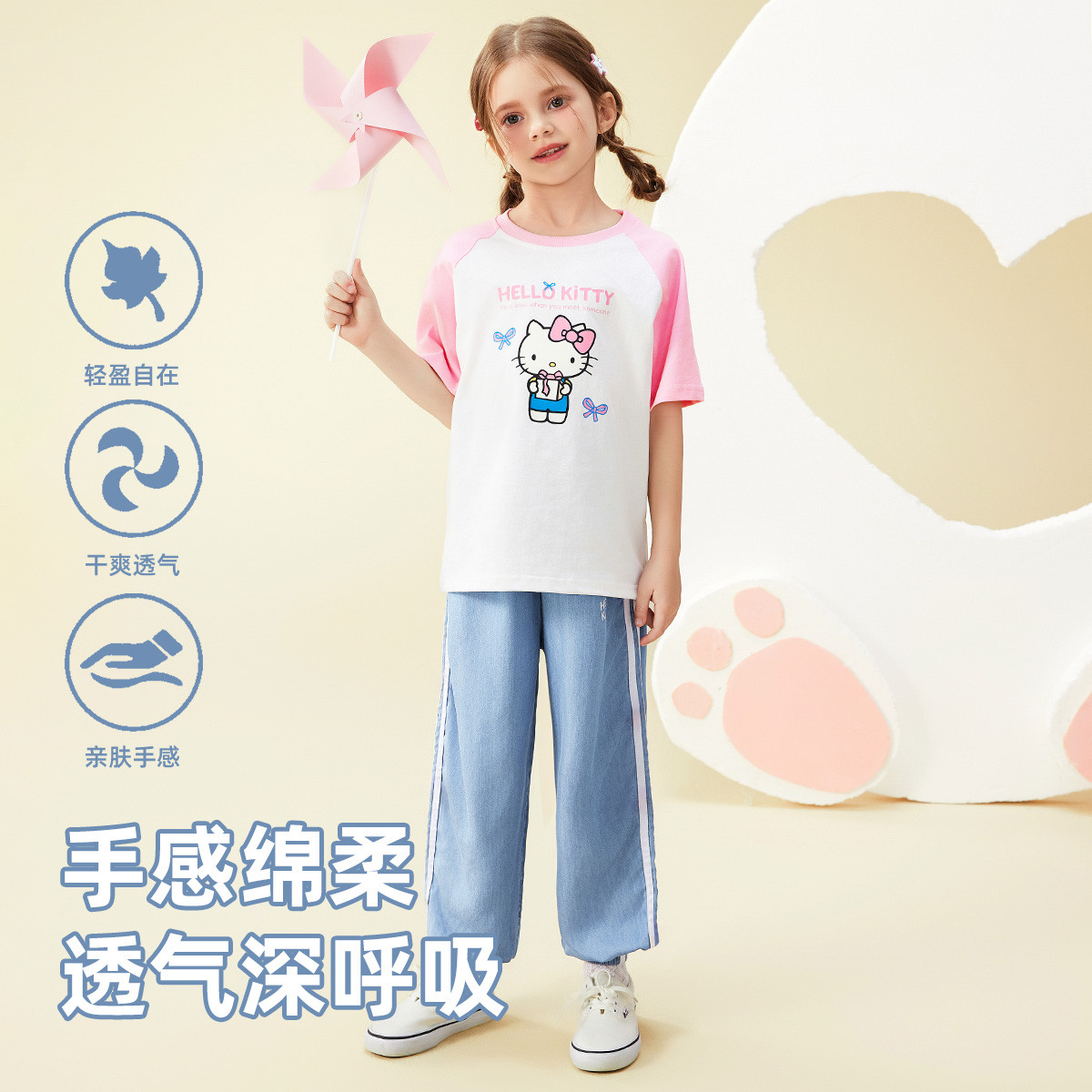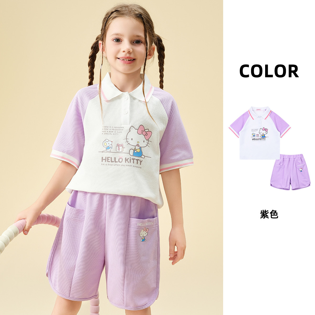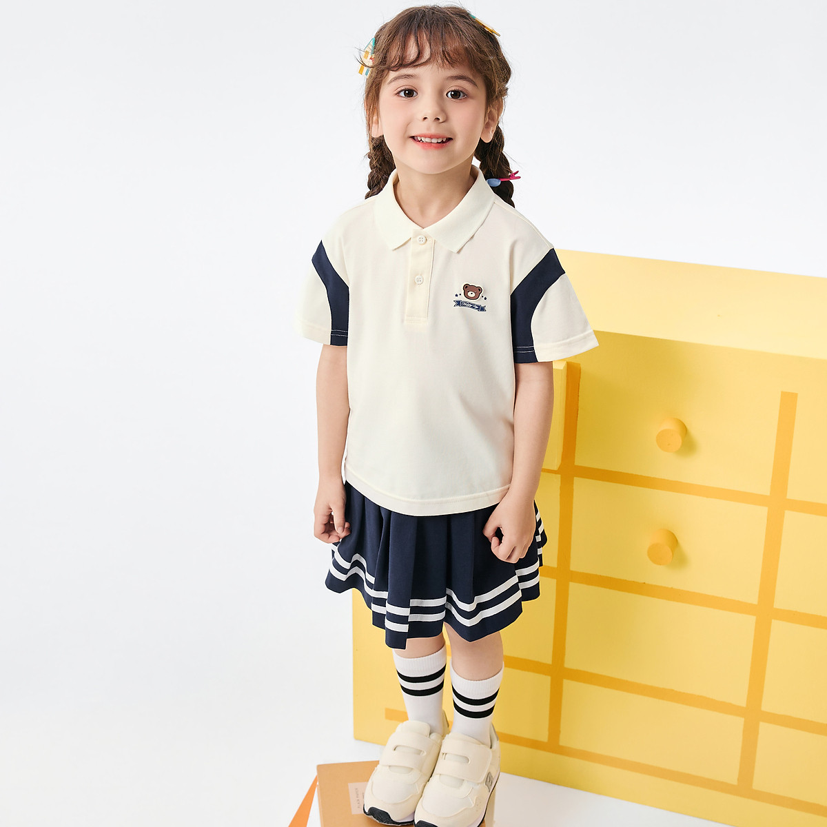 女童学院风套装25年夏季儿童夏款纯棉透气短袖中大童运动两件套 908371