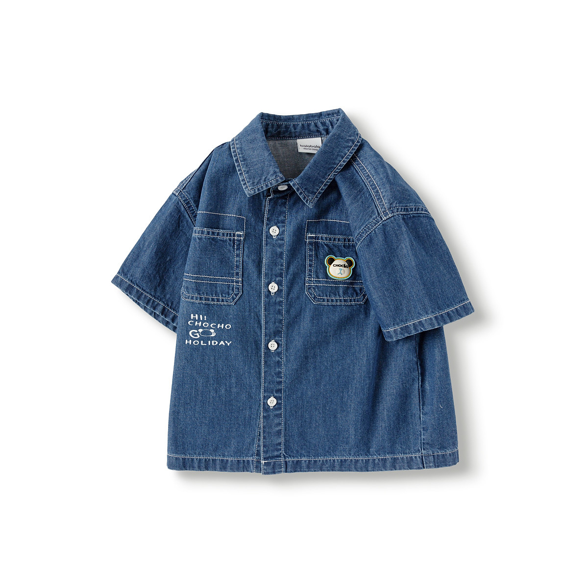 巴拉巴拉童装儿童短袖衬衫纯棉牛仔外套男童夏装宽松上衣印花潮流 436293