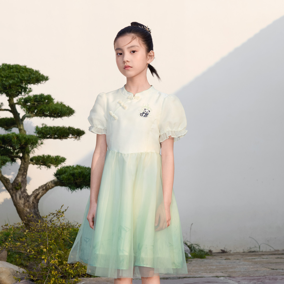 国风旗袍裙儿童裙子女童连衣裙2024夏季大童立领纱裙 403013