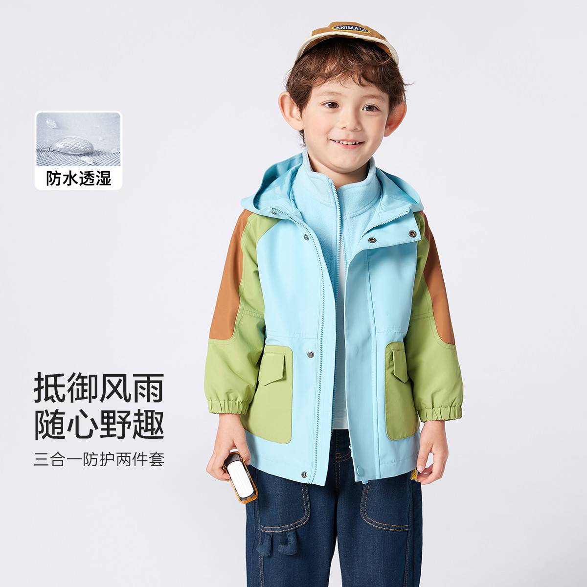 一衣多穿两件套防水透湿儿童外套男童女童春秋童装 642053