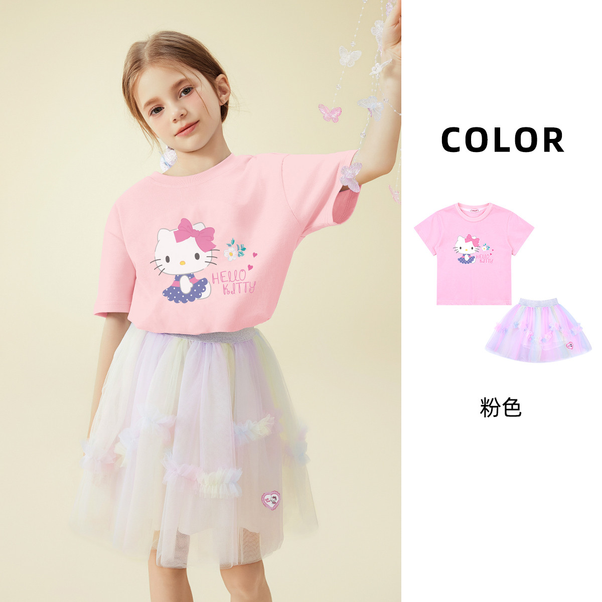 【卡通短袖T恤+渐变网纱裙】女童夏季套装24款甜美两件套裙子 179166