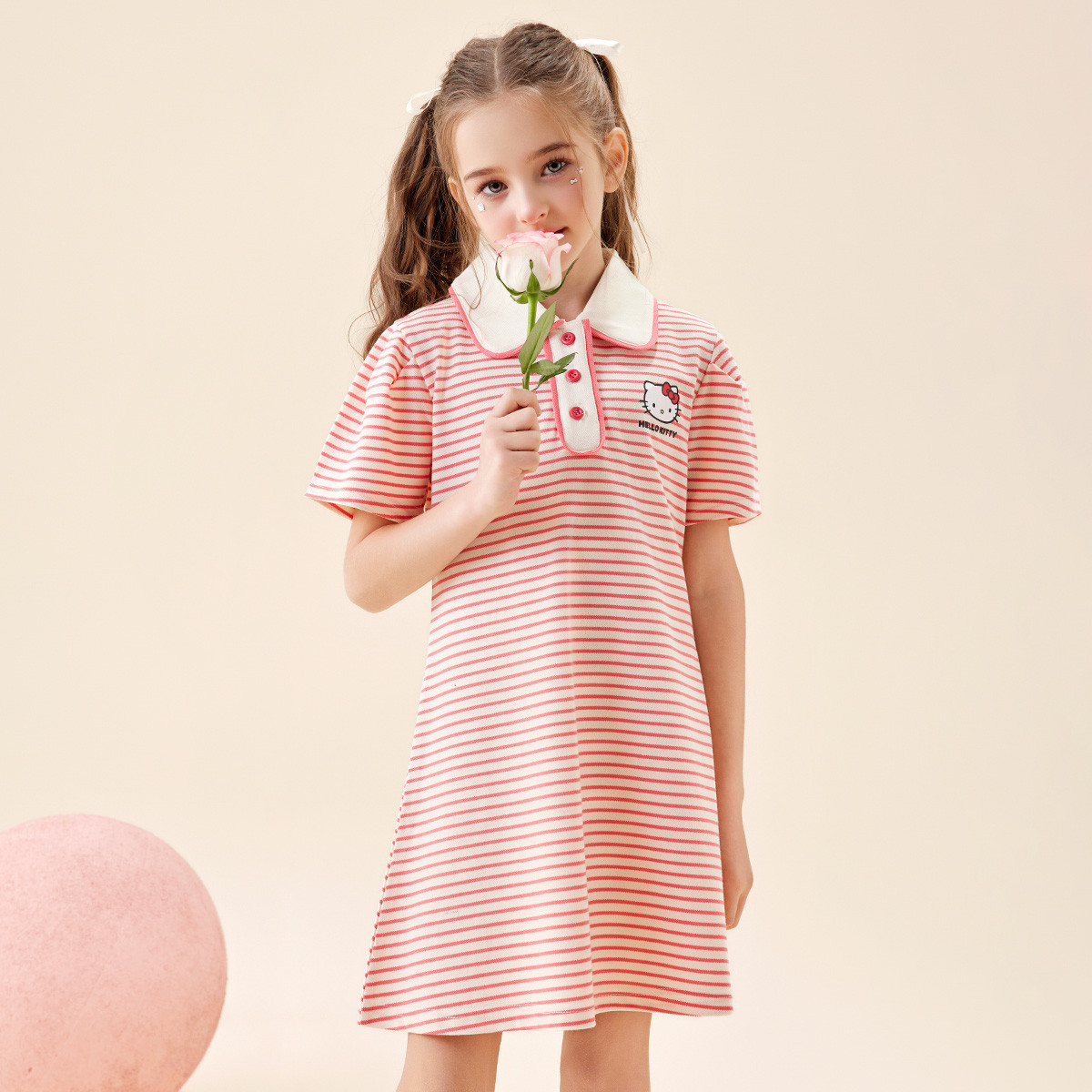 女童夏季连衣裙2025款翻领条纹卡通3-12岁中大童短袖裙子 950942