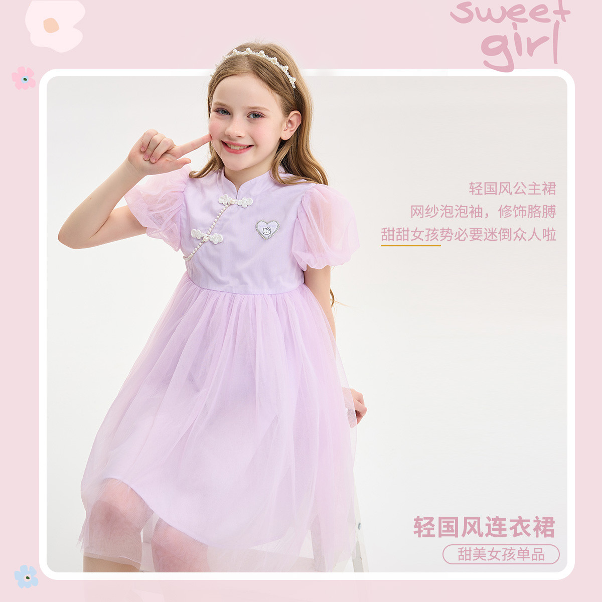 夏季儿童网纱连衣裙国风汉服裙泡泡袖女童公主裙子甜美洋气高级感 134593