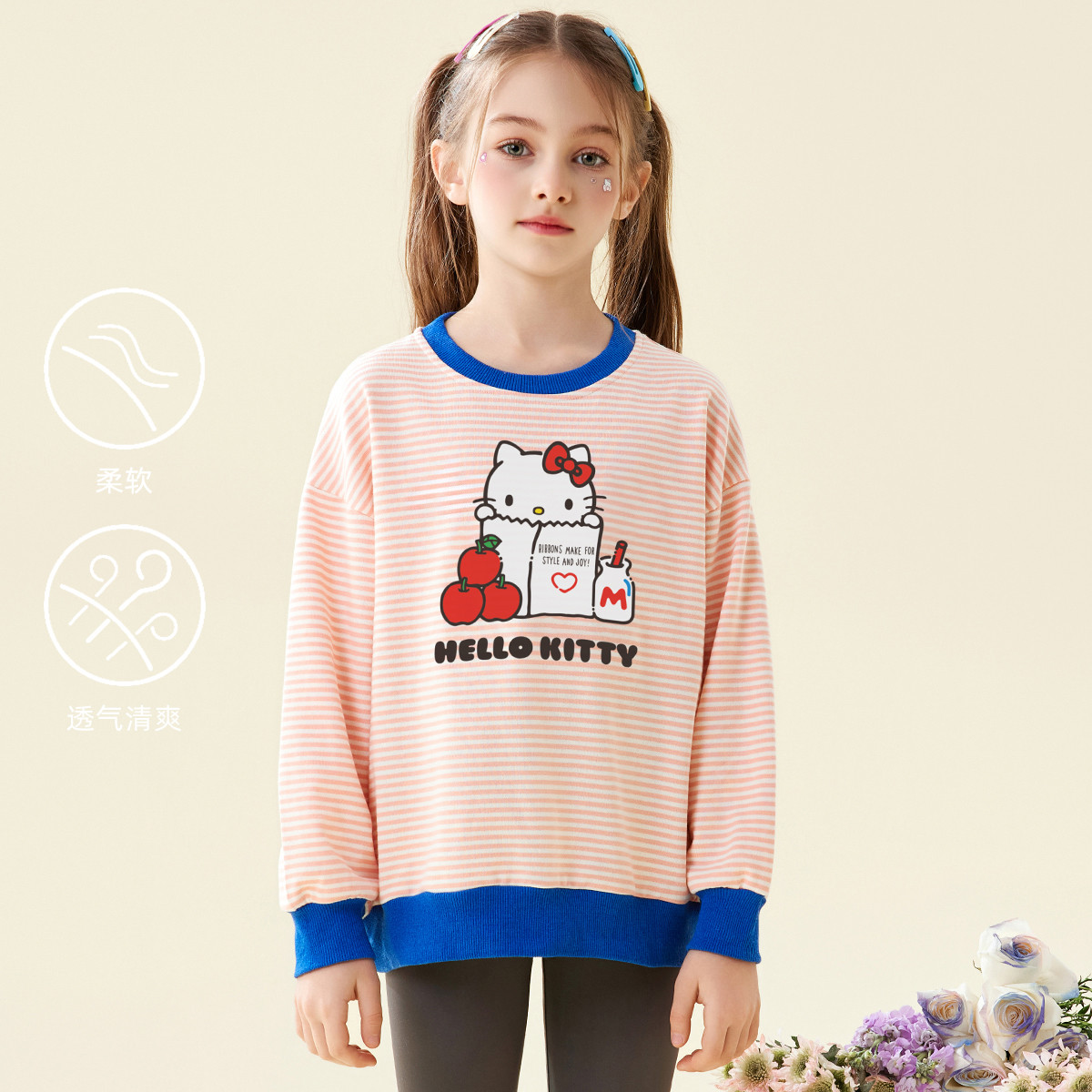【撞色条纹卫衣】女童春季2025年款中大童可爱风休闲上衣 685022