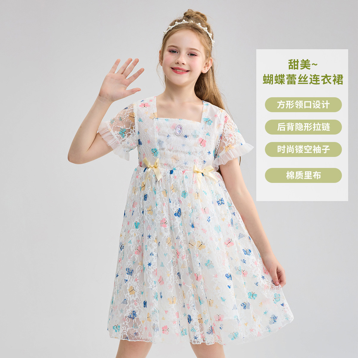 夏季儿童连衣裙公主裙蕾丝镂空袖清凉透气可爱网纱碎花裙裙子蝴蝶 441217