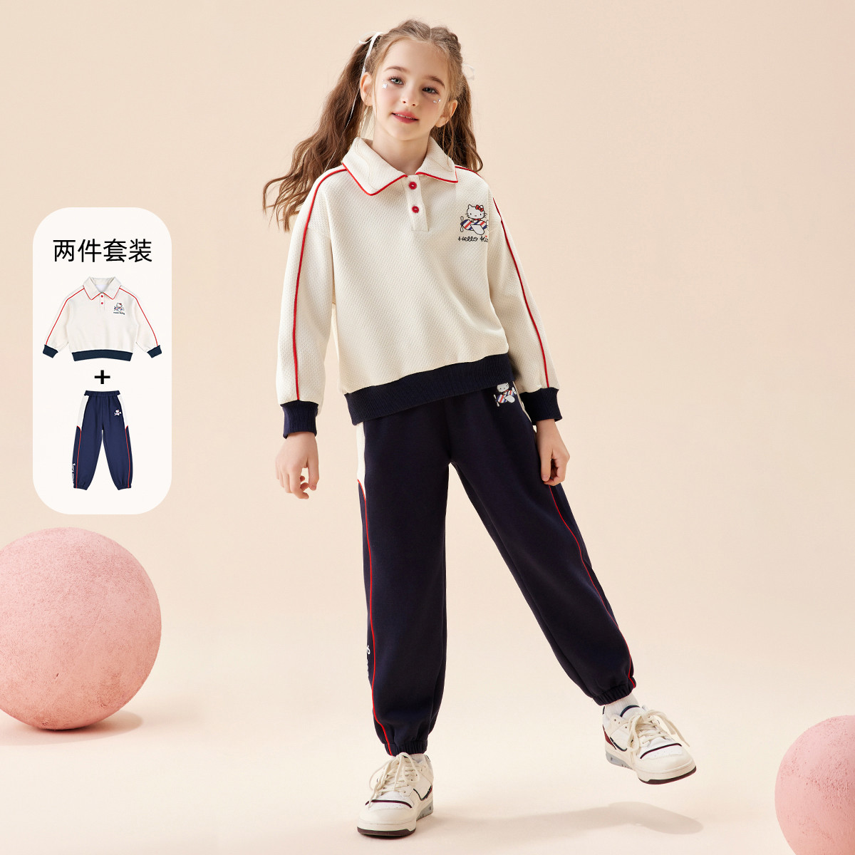 女童学院风套装25年夏季儿童夏款纯棉透气短袖中大童运动两件套 908371