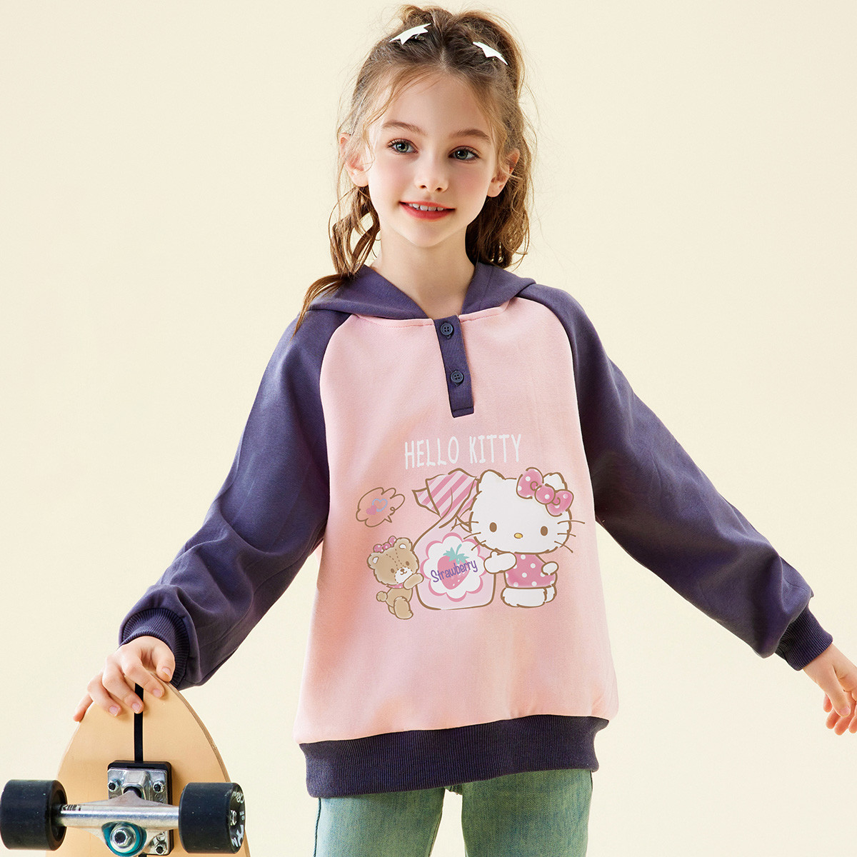 童装女童春季连帽卫衣2025年卡通印花宽松拼接中大童装 257758